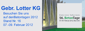 Auf den Betontagen 2012 in Ulm haben wir das innovative Lotter-Roth-Thermosystem präsentiert, mit dem im Rahmen einer bestehenden Fertigungsanlage (Palettenumlaufanlage oder Bahnenfertigung) thermisch aktive Betonfertigteile ohne Umstellung der Produktionsmethoden und -abläufe rationell hergestellt werden können.